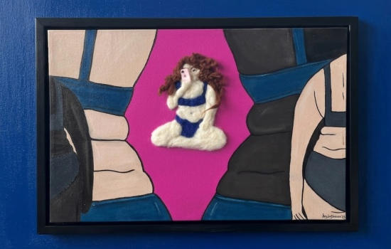 Amy LaBossiere is an award-winning mixed-media artist whose work explores grief, healing, and emotional transformation. Working with layered surfaces that incorporate fiber, paint, found fabrics, and objects, she creates tactile narratives that investigate resilience, recovery, and human connection.